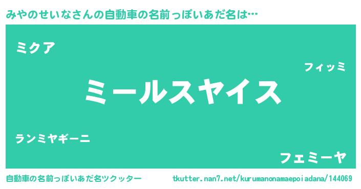 | 男性向けラノベタイトル風あだ名 | 『転生したらみやのせいなだった件』 |