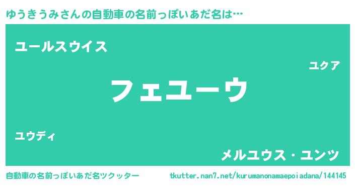 | 男性向けラノベタイトル風あだ名 | 『緋弾のユウキウミ』 |