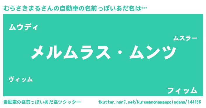 | 男性向けラノベタイトル風あだ名 | 『Re:むらさきまるから始める異世界生活』 |