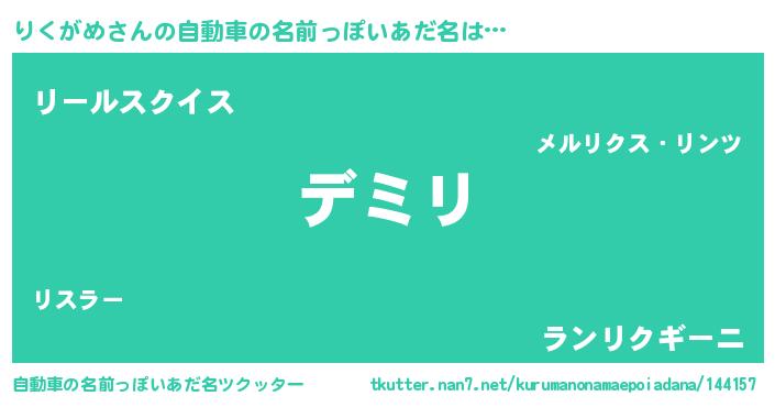 | 男性向けラノベタイトル風あだ名 | 『りくがめという概念が存在しない退屈な世界 』 |