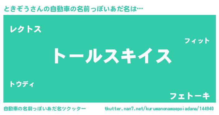 | 男性向けラノベタイトル風あだ名 | 『転生したらときぞうだった件』 |