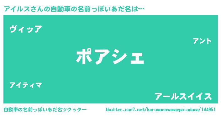 | 男性向けラノベタイトル風あだ名 | 『この素晴らしい世界にアイルスを!』 |