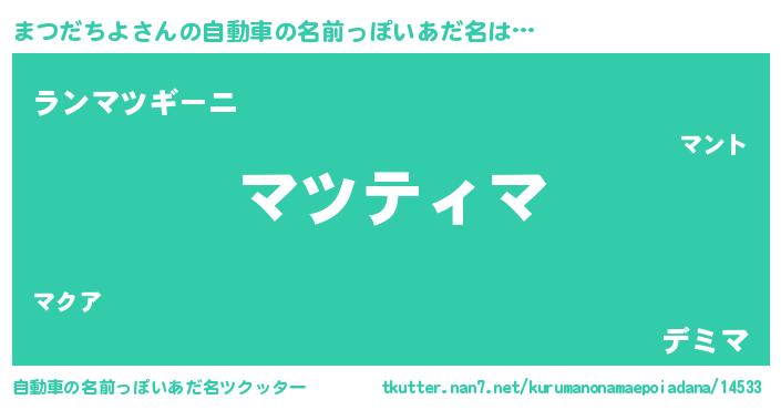 | 胡散臭い通販商品みたいなあだ名 | 『億万長者になれるブレスレット…その名も「まつだちよ」』 |