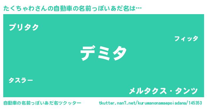 たくちゃわさんの自動車の名前っぽいあだ名をツクッター!