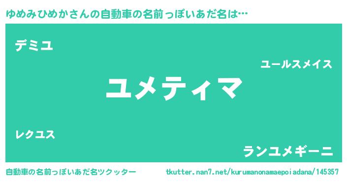 | ファンタジー風あだ名 | 『ユメフェル』『ユメディッシュ』 |