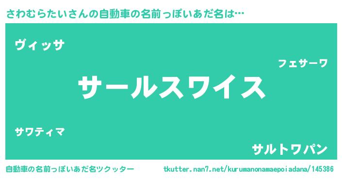 | 男性向けラノベタイトル風あだ名 | 『転生したらさわむらたいだった件』 |