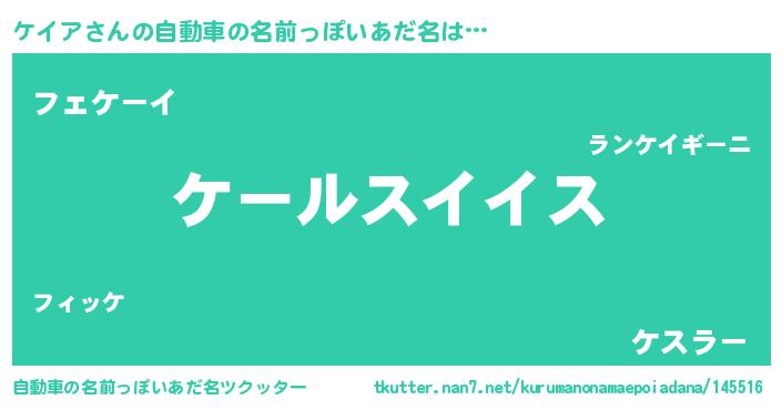 | 欧米人風あだ名 | 『トリンドルケイア』『ケイアクリステル』 |