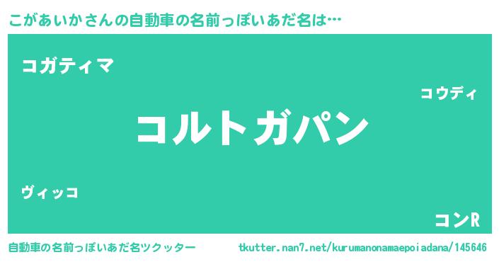 | 胡散臭い通販商品みたいなあだ名 | 『信頼と実績のサプリメント…その名も「こがあいか」』 |
