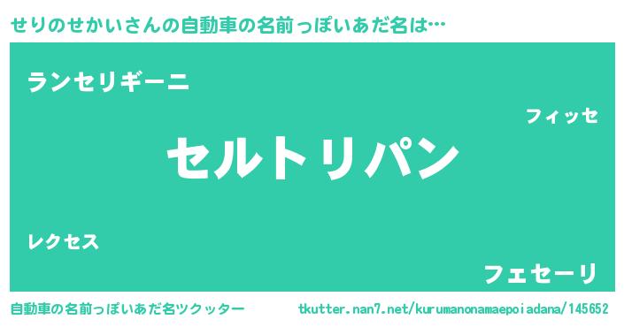 | 胡散臭い通販商品みたいなあだ名 | 『信頼と実績のサプリメント…その名も「せりのせかい」』 |