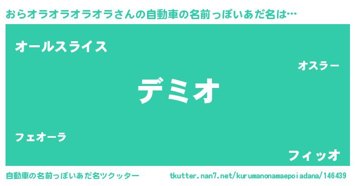| 女子向けラノベタイトル風あだ名 | 『異世界で失敗しない100のおらオラオラオラオラ』 |