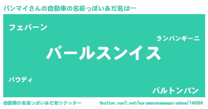 | 男性向けラノベタイトル風あだ名 | 『バンマイスレイヤー』『緋弾のバンマイ』 |