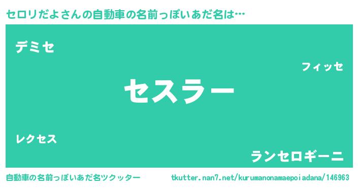 | ファンタジー風あだ名 | 『エターナルセロリダヨー』『ゼセロトゥ』 |