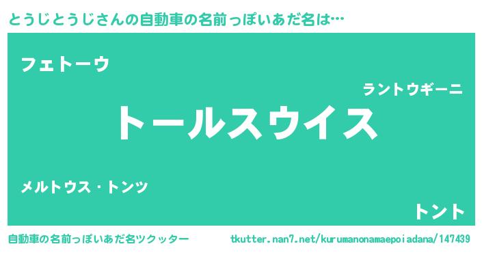 | 男性向けラノベタイトル風あだ名 | 『転生したらとうじとうじだった件』 |