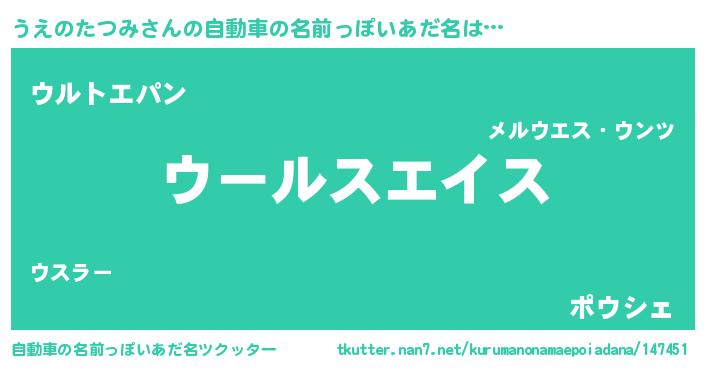 | ポケモン風あだ名 | 『ウエキング』『ヒウエノタツミ』 |