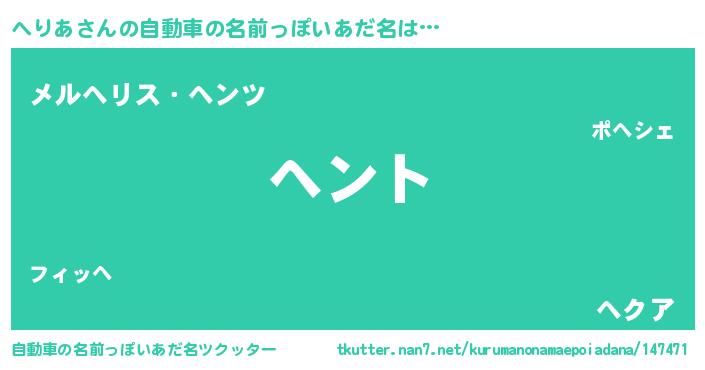 | 意味不明あだ名 | 『とにかく怪しいへりあ』『自称へりあ』 |