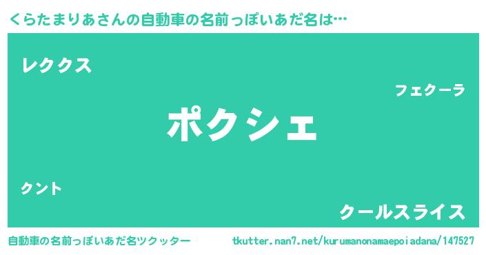 | 意味不明あだ名 | 『住所不定無職くらたまりあ(84歳)』 |