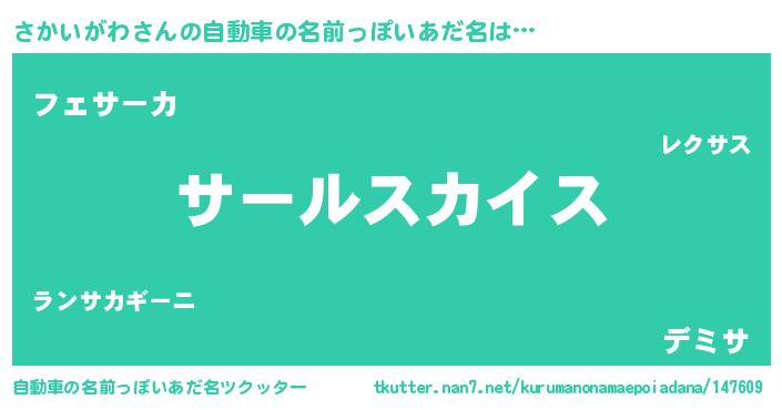 | 男性向けラノベタイトル風あだ名 | 『転生したらさかいがわだった件』 |