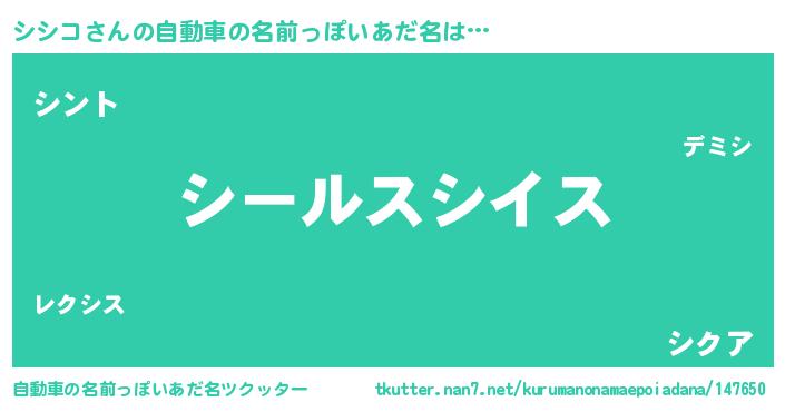 | 男性向けラノベタイトル風あだ名 | 『シシコ~年齢イコール彼女いない歴の魔法使い~』 |