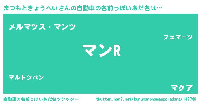 | ヒーロー風カッコイイあだ名 | 『慈愛の使者まつもときょうへい』 |