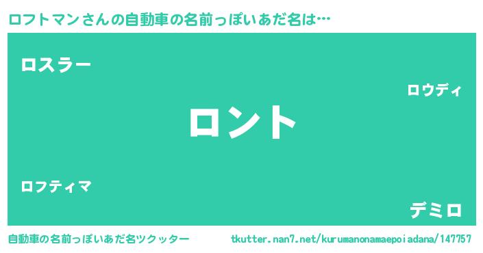 | 男性向けラノベタイトル風あだ名 | 『ロフトマンの嫁は女の子じゃないと思った?』 |