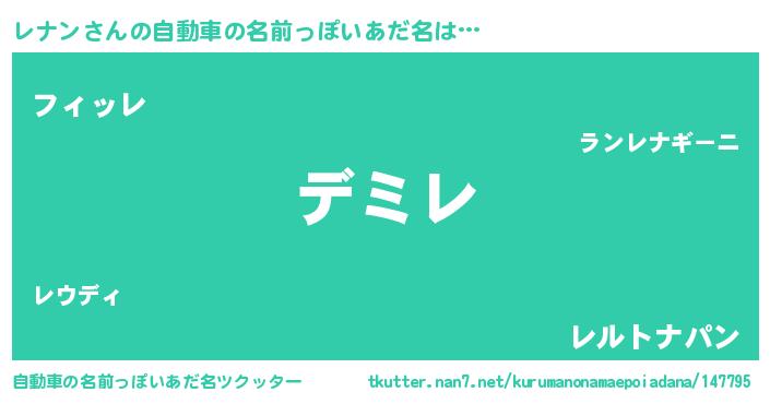 | 意味不明あだ名 | 『永久保存レナン』『自称レナン』 |