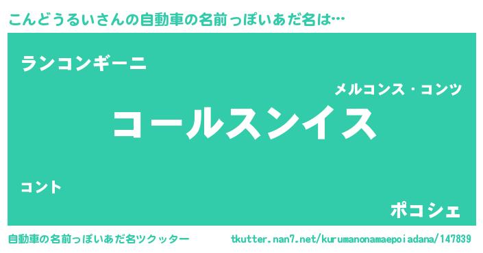 | 男性向けラノベタイトル風あだ名 | 『転生したらこんどうるいだった件』 |