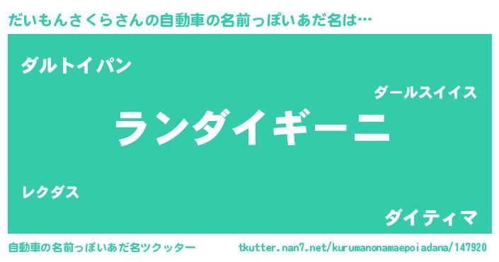 | 男性向けラノベタイトル風あだ名 | 『だいもんさくらに滅ぼされるだけの簡単なお仕事です』 |