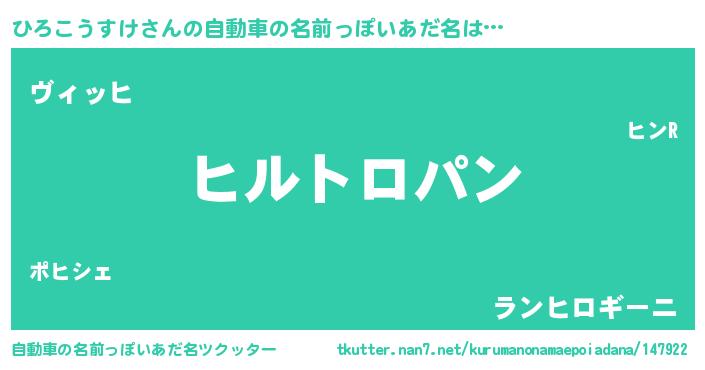 ひろこうすけさんの自動車の名前っぽいあだ名をツクッター!
