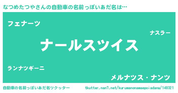 | 男性向けラノベタイトル風あだ名 | 『ナツメタツヤスレイヤー』 |