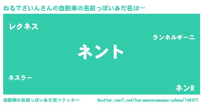 | 欧米人風あだ名 | 『ウサインねるでざいん』 |