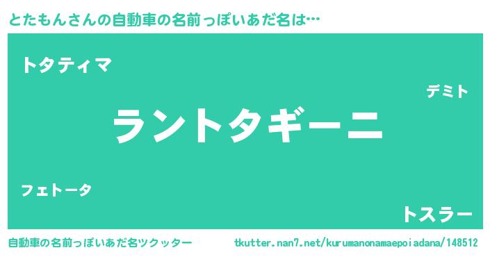 | 男性向けラノベタイトル風あだ名 | 『とたもんに滅ぼされるだけの簡単なお仕事です』 |