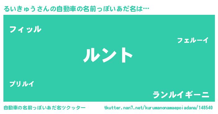 るいきゅうさんの自動車の名前っぽいあだ名をツクッター!