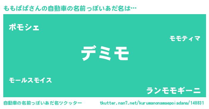 | 意味不明あだ名 | 『永久保存ももばば』『ペロリンももばば』 |