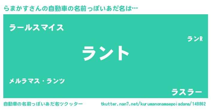 | 男性向けラノベタイトル風あだ名 | 『らまかすの嫁は女の子じゃないと思った?』 |