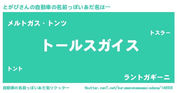 | 男性向けラノベタイトル風あだ名 | 『転生したらとがぴだった件』 |