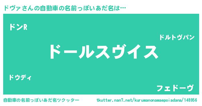 | 男性向けラノベタイトル風あだ名 | 『ドヴァ~年齢イコール彼女いない歴の魔法使い~』 |