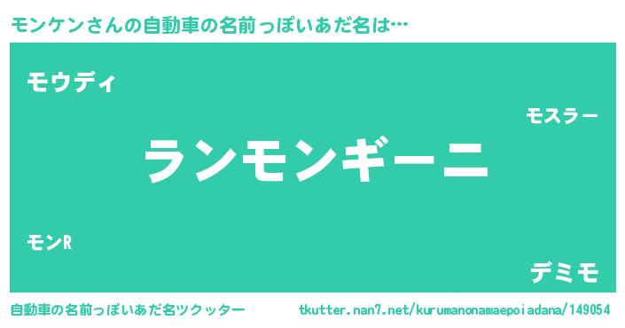 モンケンさんの自動車の名前っぽいあだ名をツクッター!
