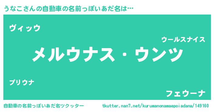 | 男性向けラノベタイトル風あだ名 | 『Re:うなこから始める異世界生活』 |