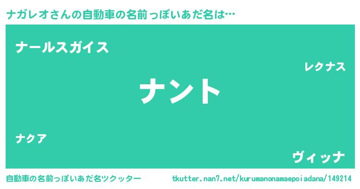 | 男性向けラノベタイトル風あだ名 | 『ナガレオの嫁は女の子じゃないと思った?』 |
