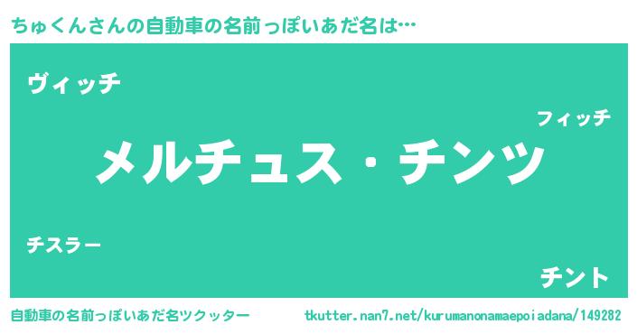 | 男性向けラノベタイトル風あだ名 | 『Re:ちゅくんから始める異世界生活』 |