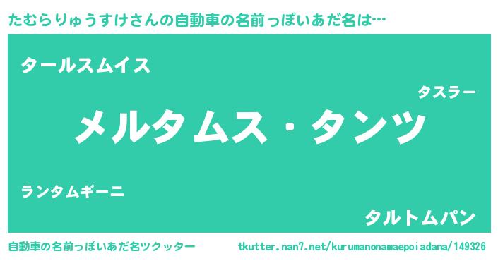 | 男性向けラノベタイトル風あだ名 | 『Re:たむらりゅうすけから始める異世界生活』 |