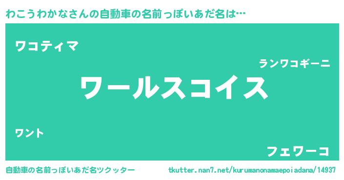 | 男性向けラノベタイトル風あだ名 | 『ワコウワカナスレイヤー』 |