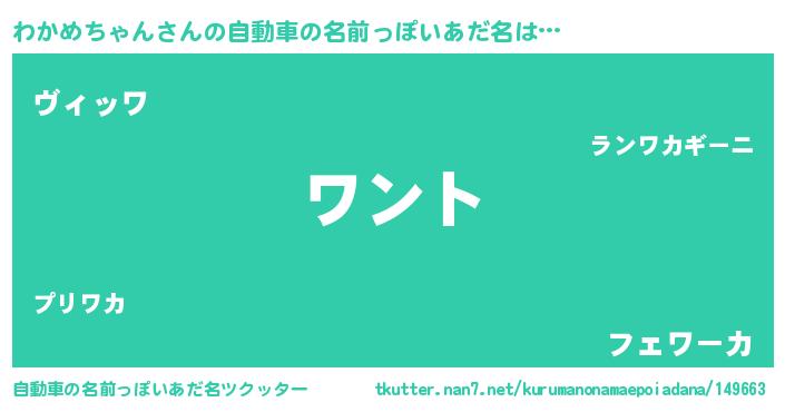 | ポケモン風あだ名 | 『ヒワカメチャン』『ゼニワカ』 |