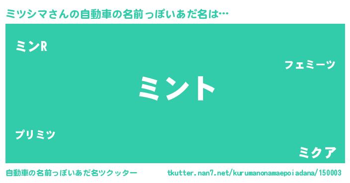ミツシマさんの自動車の名前っぽいあだ名をツクッター!