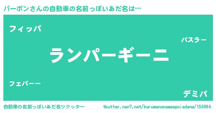 | 男性向けラノベタイトル風あだ名 | 『パーポンに滅ぼされるだけの簡単なお仕事です』 |