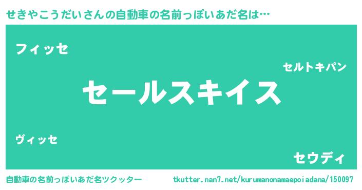 | 男性向けラノベタイトル風あだ名 | 『セキヤコウダイスレイヤー』 |