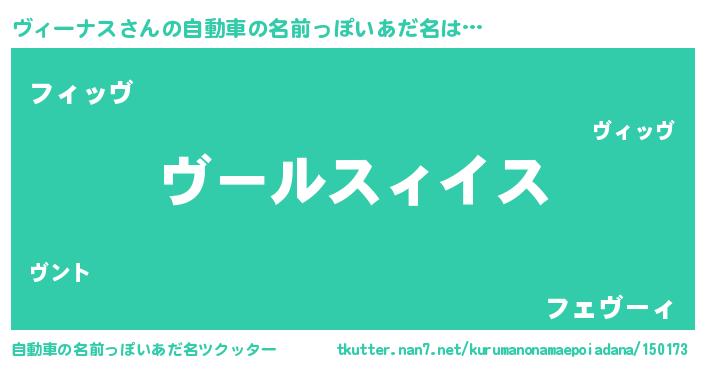 | 男性向けラノベタイトル風あだ名 | 『ヴィーナス~年齢イコール彼女いない歴の魔法使い~』 |