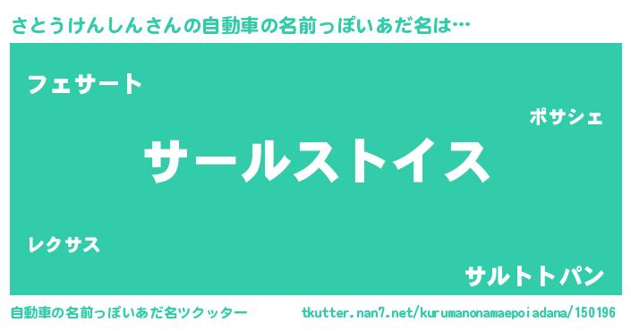 | 男性向けラノベタイトル風あだ名 | 『サトウケンシンスレイヤー』 |