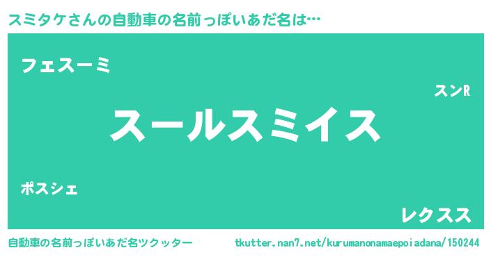 | 男性向けラノベタイトル風あだ名 | 『スミタケ~年齢イコール彼女いない歴の魔法使い~』 |
