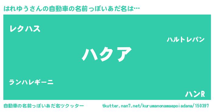 | ファンタジー風あだ名 | 『エターナルハレユウー』『ゼハレトゥ』 |